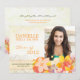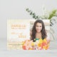 Flores tropicais coloridas projetadas em convites abertos feitos sob encomenda da festa em casa dos anúncios | da graduação da foto. Este cartão liso bonito & original pode servir como o convite da casa aberta dos mais velho e/ou o anúncio da graduação dos mais velho. Todo o texto & foto do defeito podem inteiramente ser personalizados com seus próprios fraseio e foto. Sinta livre mudar também os tamanhos, as pias batismais e as cores do texto.