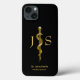 Design profissional de negócios elegante para fins médicos: haste de ouro precioso de símbolo Asclepius sobre fundo preto. Perfeito para qualquer negócio relacionado a cuidados de saúde, como consultório médico, clínica ou hospital. Para funcionarios hospitalares, médicos, enfermeiras; elegantes, nobres e elegantes.
