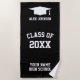 Classe personalizada de toalhas de praia para a graduação. Toalha de praia personalizada com nome do segundo grau e ano do formando; 2023, etc. Legal ideia de presente de festa de formatura para formandos, estudantes, mais velho, etc. Acessórios divertidos de verão para praia ou piscina. Cor de fundo preto e branco ou personalizada. Chapéu de Tassel e modelo de tipografia grande.