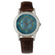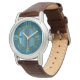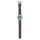 Um relógio de senhoras clássico com tiras de couro em relevo crocante e estojo de liga de prata. As características incluem também um teal com design de anel de ouro redondo na face.Numerais geométricos para combinar,