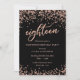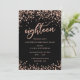 Convites de festas de aniversários clássico 18º: rosa de ouro cintilante confetti 18º design de convite de aniversário com bolinhas de aparência brilhante rosa dourada brilhante. Rosa dourado "dezoito" escrito em tipografia de escrita com letra de mão. A inscrição temporária preenche os detalhes da festa. [Observe que, embora os elementos deste design possam se parecer com brilho, não é usada nenhuma tinta digital ou metálica para criar os convites - a brilha é um efeito impresso.]