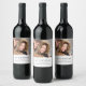 Chic e legantes rótulos de vinho são uma maneira perfeita de personalizar seus favores de casamento de vinho. Design apresenta sua foto favorita com seu sobrenome, data de casamento e variedade de vinho embaixo em caracteres clássicos de cinza carvões, em um fundo branco.