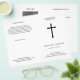 Com uma cruz simples, mas elegante, este folheto funerário dobrável é uma celebração graciosa da vida. Projetado para ser impresso em ambos os lados, a frente mostra o nome do ente querido e você pode, opcionalmente, adicionar uma fotografia favorita no interior, que pode ser editada com a ordem do serviço ou o que desejar. Em um momento difícil, este design contemplativo é adequado para uma celebração do serviço de vida ou um serviço memorial religioso da igreja. Por favor, note que você pode alterar a cor da cruz no editor Zazzle 'personalizar mais'
