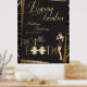 Clássico e sofisticado, Preto e Dourado no Estilo da Arte Deco dos 20, Estilo Vintage Gatsby Roaring e Elegante, com o tema "Gatsby Excelente" de 1920 em tons pretos e dourados. Um fundo preto destaca o intricado design do estilo Arte Geométrica do Deco e as letras criadas em um ouro gradiente.