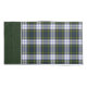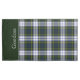 travesseiro do tamanho do xadrez do Na moda com o padrão tradicional azul, verde, amarelo, preto e branco de Gordon Dress Tartan. Uma barra verde e branca, no fim do caso, tem um texto personalizado branco, na frente do travesseiro. Personalize o texto para ler o que você deseja.