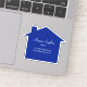 Etiquetas de adesivo imobiliário em forma de casa clássica em azul marinho com espaço de nome para o nome da sua empresa e informações de contato ou nome do Realtor profissional e detalhes de contato. Coloque-os na correspondência de seu cliente, enviando envelopes como selos de envelopes ou em qualquer lugar onde você queira promover sua empresa e manter seu nome ou marca diante dos clientes.