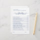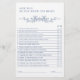 Elegante chá de panela floral azul 'Como você conhece bem a noiva?' com texto personalizado nas costas. Para uma personalização mais avançada deste design, clique no BOTÃO DE FERRAMENTAS DESIGN acima!