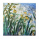Artista: Claude Monet Título: Yellow Irises and Malva Year: 1914 -1917 BeauBondão amarela irises com folhas verdes altas contra um céu azul calmo.