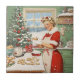 Numa cozinha confortável e coberta de neve, a Sra. Claus é capturada no meio de assar de férias. Vestida com um vestido vermelho festivo com capas aparadas de pele, e um avental correspondente, ela sorri muito bem enquanto prepara um novo lote de biscoitos. A cena é cheia de alegria natalícia, completa com uma árvore maravilhosamente decorada, enfeitada com canas doces e ornamentos vermelhos, enquanto a neve suavemente cai fora da janela, adicionando à atmosfera mágica da estação.