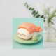 This heart-melting design features an incredibly adorable shrimp nigiri sushi character with a sweet, joyful face and soft rosy cheeks. Rendered in a high-quality 3D clay style, the character has a smooth, matte white rice body topped with a textured orange shrimp tail that shows realistic segment details. The sushi character sits comfortably on a minimalist light green circular plate, accompanied by a small, textured mound of bright green wasabi. Set against a clean, solid teal background, the overall "kawaii" aesthetic is modern, bright, and full of gentle charm, making it an irresistible choice for any fan of Japanese cuisine or whimsical food-themed art. This cheerful sushi postcard is a wonderful choice for sending a "soy happy for you" note or a playful greeting to a friend who loves foodie adventures. You might choose to use this cute food card for a Japanese dinner party invitation or to celebrate a fun culinary milestone with your family members. It also makes a precious decorative piece for a kitchen wall or a bright addition to a food-themed scrapbook as a small token of happiness. This versatile design is also an excellent choice for restaurant grand opening announcements, sushi-making class invites, or as a heartwarming way to share a short message of joy for any situation or event.