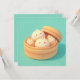 This heart-melting design features three incredibly sweet steamed dumplings with simple, joyful faces and soft rosy cheeks. Rendered in a high-quality 3D clay style, the dumplings have a smooth, matte doughy texture and are clustered together inside a light brown bamboo steamer basket. The open lid of the steamer rests behind the dumplings, suggesting a fresh and warm meal just ready to be enjoyed. Set against a clean, solid teal background, the minimalist and "kawaii" aesthetic creates a charming food-themed scene that is perfect for anyone who loves dim sum, Asian cuisine, or whimsical character art. This cheerful dumpling postcard is a wonderful choice for sending a "thinking of you" note or a playful greeting to your favorite dining partner. You might choose to use this cute food card for a brunch invitation or to celebrate a fun culinary milestone with your family members. It also makes a precious decorative piece for a kitchen wall or a bright addition to a food-themed scrapbook as a small token of happiness. This versatile design is also an excellent choice for restaurant anniversary announcements, Lunar New Year party invites, or as a heartwarming way to share a short message of joy for any situation or event.
