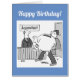 Um cartão de aniversário muito engraçado, que será apreciado por qualquer pessoa que trabalhe em contabilidade ou em finanças, talvez. A imagem mostra um contador que se surpreende ao ver um cliente entrar no seu escritório carregando um gigante porquinho-banco. A legenda diz "Alguns aqui ainda favorecem os métodos mais tradicionais". Personalize com uma mensagem própria.