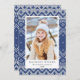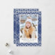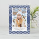 cartão com fotos de feriado com um padrão de blusa azul e branco com espaços reservados para fotos e texto.