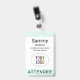 Personalize nosso crachá de participante profissional com o logotipo do evento, o nome do participante e outro texto personalizado. É plástico pvc e disponível com um jardim, clipe ou um rolo retrátil. Projetado em verde-menta e outras cores com uma design moderna minimalista do MISOOK. Todas as cores são personalizáveis. Você pode, opcionalmente, adicionar outro conteúdo ao verso (código QR, termos etc.). Personalize facilmente o título do participante (convidado VIP, visitante, auto-falante etc.). Nenhuma quantidade mínima de ordem e nenhuma taxa de configuração. Todas as encomendas são satisfeitas pela Zazzle em produtos do Zazzle. O MISOOK NÃO tem suas informações de personalização, envio ou cartão de crédito, portanto entre em contato diretamente com a Zazzle para fazer perguntas, inclusive sobre como personalizar seu design.