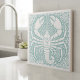 This tile showcases a detailed lobster encircled by swirling wave forms, teal textures, and tiny bubble motifs. The two-tone teal and ivory palette creates a striking block-print aesthetic that emphasizes the coral’s elegant shape. With its rich pattern and handcrafted feel, this tile works beautifully in beach homes, nautical décor themes, accent walls, backsplashes, and decorative coastal projects. Search ID1208 to see additional colors and design motifs in this series. Note: design may contain generative content