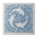 This intricate, vintage-inspired design features three graceful dolphins swimming in a circular, yin-yang-like arrangement. The dolphins, rendered in crisp white, are set against a richly detailed deep indigo blue background filled with elegant swirling scrolls, delicate dots, and organic maritime motifs suggesting waves and bubbles. The whole image is framed by a highly decorative, square border featuring sophisticated floral and baroque elements. Perfect for adding a touch of classic, Mediterranean, or coastal charm to any home decor item. Search ID1208 to see additional colors and design motifs in this series. Note: design may contain generative content