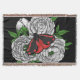Ilustração vetorial desenhada à mão da mariposa cinabar sobre um buquê de flores de pénia