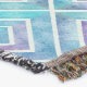 Abstrato azul geométrico, azulejos quadrados roxos jogam cobertor. O foco desta design é o belo efeito aquarela do padrão em azul e roxo.