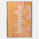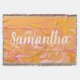 Trabalho de arte de mármore abstrato colorido em amarelo, laranja e rosa pincelado, personalizado com seu nome.