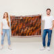 Um padrão fractal laranja, castanho e preto, angular, parecido com tecido tecido. Personalize adicionando seu próprio texto.