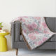 Este cobertor apresenta delicadas flores de água-forte rosa.