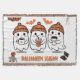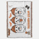 Trois petits fantômes adorables, bonnets orange sur la tête, boisson chaude à la main, entourés de citrouilles sculptées, de chauves-souris et de squelettes amusants. Le texte “HALLOWEEN SEASON” capture l’ambiance automne + café chaud, douce et festive plutôt que terrifiante. Illustration noir / orange / blanc pour des produits d’Halloween mignons et cosy (mugs, sweats, couvertures, cadeaux).