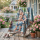 Esta ilustração calorosa captura um momento terno entre uma avó e sua neta no alpendre, envoltas em calor, conforto e alegria silenciosa. Sorrisos suaves, bochechas rosadas e proximidade afetuosa criam uma atmosfera de amor e segurança, ambientada em um encantador alpendre de casa de campo repleto de flores em flor, tons pastéis e vegetação iluminada pelo sol. O estilo de aquarela suave e o capricho de livro de histórias se misturam lindamente com a estética cottagecore e shabby chic, evocando nostalgia, laços familiares e a beleza simples dos momentos cotidianos. A paleta de cores tende para azuis calmantes, rosados suaves e verdes frescos de primavera, criando uma história visual pacífica e confortável, cheia de doçura e graça. Arte gerada por IA.