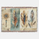 Aztec design tribal nativo americano de 3 cores, penas bloqueadas e pau de remédio em fundo azul e areia do deserto.
