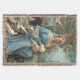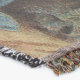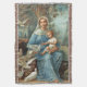 O cobertor de lançamento da Madonna Azul Francesa apresenta uma imagem de um belo cartão sagrado francês antigo impresso no final do século XIX. Jesus e a Mãe Abençoada estão cercados por pombas brancas e uma paisagem arborizada nebulosa.