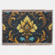 Dieses Bild zeigt ein nahtloses barockes Muster mit goldenen und gelben floralen Ornamenten auf dunklem Hintergrund. Die detailreichen, symmetrischen Elemente verleihen dem Design einen luxuriösen, klassischen und eleganten Charakter, ideal für Tapeten, Textilien oder hochwertige Oberflächengestaltung.