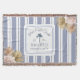 Apresentamos nosso Blanket de Lança Azul Stripes Costeiras Boho. Apresentando a ilustração aquosa das folhas de orquídeas e palmeiras secas com tiras azuis de marinho como fundo. Adequado para casa de praia de férias de aluguel ou casa de chalé costeira.