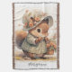 Este cobertor personalizável apresenta um doce esquilo de bebê em um vestido e capota, carregando cesto de flores coloridas. Descrito em um estilo clássico inspirado no Beatrix Potter, este design traz um charme eterno, gentil. Um nome cursivo elegante pode ser adicionado à parte inferior do design, criando um item exclusivo e personalizado. Este cobertor é ideal para quartos infantis, berçários, seja como um cobertor de lama ou uma parede pendurada, e faria um presente bem pensado. Combina arte animal detalhada com um toque pessoal, perfeito para quem aprecia temas de livros de histórias e ilustrações tradicionais.