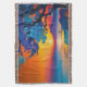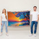 colorida árvore azul e púrpura florida Belo nascer do sol no horizonte sobre gramíneas coloridas da lagoa AI ART criada por minx267
