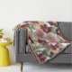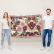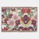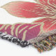 Este produto apresenta um belo padrão com elementos florais e cores atraentes - vermelho, rosa, amarelo, verde sobre fundo branco.