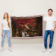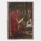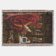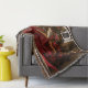 Dragão vermelho sentado no computador, lendo um livro. À sua volta estão muitos tesouros de todas as suas aventuras.