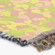 A dreamy, abstract print that blurs the lines between floral forms and soft, atmospheric textures. Using a gentle interplay of sunny butter yellow, muted pear green, and tender peach pink, the pattern creates an illusion of flowers softly emerging from a hazy, painterly mist, offering a subtle yet captivating visual depth.