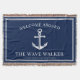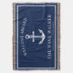 Um cobertor de lançamento personalizado adaptado ao orgulhoso proprietário do barco. Apresenta uma âncora náutica vintage, seguida do nome do barco e do nome do capitão do navio e do local da doca.