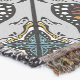 Com um padrão diagonal, esta borboleta monarca inspirou um padrão gráfico que é meu próprio design artístico original a 100%. Mosaicos de cor laranja, amarelo, preto, branco e empoeirado, em forma azul-lacre, numa vibração Boho com fundo de cinza de luz.