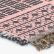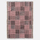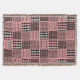 Este cobertor tem um design de boho de quadrados com padrões em preto e rosa.