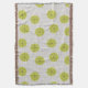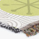 Este cobertor de lama tem uma design moderna do século médio de arcos bronzeados se repetindo sobre o branco como um fundo com círculos de ouro verde repetindo com estrelas de ouro verde-escuro dentro.