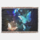 Fabulosa, brilhante, azul e amarela, borboleta noturna sobre fundo escuro.