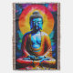 Um trabalho de arte cativante representando Buda em meditação serena, cercado por uma sinfonia de cores vibrantes que irradiam paz e iluminação. A cena está repleta de padrões fluentes de matizes ouros, blues suaves e vermelhos quentes, simbolizando harmonia, compaixão e energia espiritual, brilhando design em volta do Buda, significando pureza e transcendência. O fundo combina elementos celestes, como auras suaves e radiantes e mandalas etéreas, para evocar uma conexão divina. Perfeito para amantes do budismo, esta peça convida a calma interior e inspira atenção em qualquer espaço