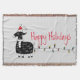 Ilustração de cabra branca com chapéu vermelho de Papai Noel, uma sequência de luzes de feriado e texto personalizável de "Feliz Feriado"