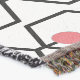 Este cobertor tem uma design moderna do século médio, feita de hexágonos acorrentados com um círculo num dentro de pino cada um.