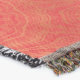 Um design caleidoscópico detalhado com linhas de cor ouro fino se cruzando sobre fundo vermelho.