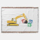 Aprender o alfabeto com caminhões de construção é sempre divertido. Uma bela ilustração de um carregando de escavador de brinquedos e blocos coloridos de alfabeto ABC móveis. Presente de Natal ideal, presente de aniversário, decoração infantil, arte de quarto infantil, decoração doméstica ou de volta à escola.