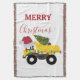 Um belo exemplo de um caminhão de construção de um caminhão de Natal vestindo um chapéu de Papai Noel e decorado em luzes de Natal com palavras "Feliz Natal" transportando uma árvore de Natal festiva. Perfeito para rapazes e raparigas que adoram caminhões de construção, caminhões de brinquedos ou maquinaria pesada. Um cobertor de Natal ideal para os entusiastas de caminhoneiros grandes ou pequenos, meninas ou meninos.