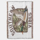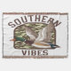 Este cobertor branco apresenta uma ilustração detalhada de um pato-real em voo, colocado sobre um fundo de camuflagem dentro de uma armação arquivada. O texto "SOUTHERN" é arquivado acima do gráfico e "VIBES" é colocado abaixo numa letra simples e em negrito. A design sugere uma apreciação pela vida selvagem e um estilo de vida sulista.