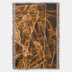 Desenhos dos cantos de quadrados em linhas ou bordas, com manchas laranja que se referem ao neon ou que podem causar percepção de placas transparentes coloridas de acrílico.