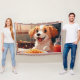 Um Cachorro branco fluffy, aplicado com manchas castanhas, mergulha de cabeça numa montanha de esparguete. O molho de tomate espalha-se pelo pelo e a toalha branca numa deliciosa bagunça. Renderizado em uma composição espantosa e masteramente equilibrada (taxa de ouro do pensamento!), a ilustração evoca o detalhado, mas caprichoso